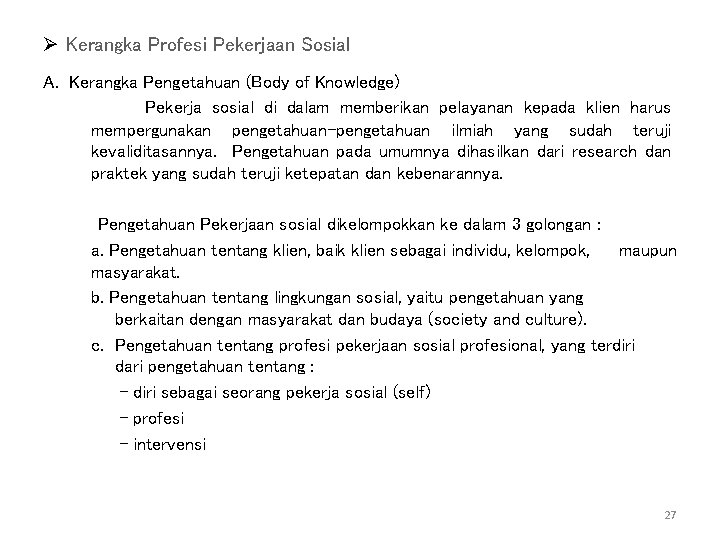 Praktikum ii merupakan praktek pekerjaan sosial berbasis institusi. Pekerja sosial profesional adalah seseorang yang bekerja, baik di lembaga pemerintah maupun swasta yang . Seluruh lulusan ilmu kesejahteraan sosial atau pekerjaan sosial ketika lulus dapat. Bahwa permasalahan kesejahteraan sosial perlu ditangani melalui praktik pekerjaan sosial yang profesional, terencana, terpadu, berkualitas, dan . Dengan menggunakan model analisis retrospektif.